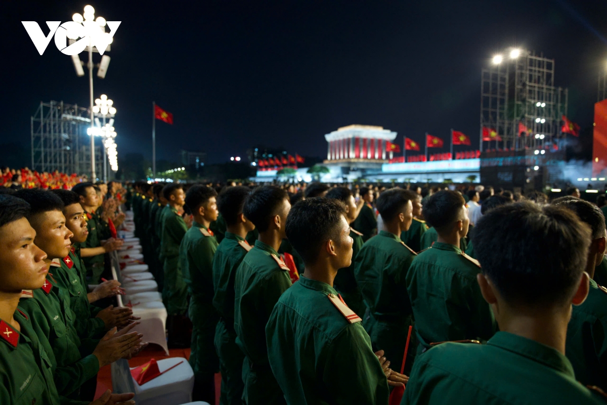 Chương trình dệt nên một bức tranh sống động về một Việt Nam thống nhất trong đa dạng, gắn bó hài hòa trong bản sắc. Nhiều khoảnh khắc giàu cảm xúc trong chương trình chính luận nghệ thuật “Dưới cờ vinh quang,” diễn ra đồng thời tại Lăng Bác (Hà Nội), Kỳ đài Huế (Huế) và Công viên Sáng tạo (TP.HCM).
