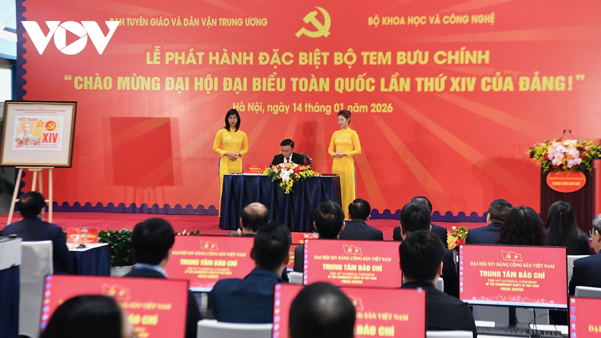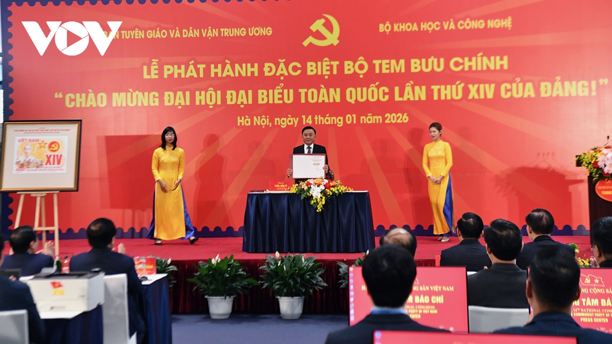 Cũng trong chiều nay, Thường trực Ban Bí thư Trần Cẩm Tú và các đại biểu dự Lễ phát hành đặc biệt bộ tem bưu chính chào mừng Đại hội Đại biểu toàn quốc lần thứ XIV của Đảng.