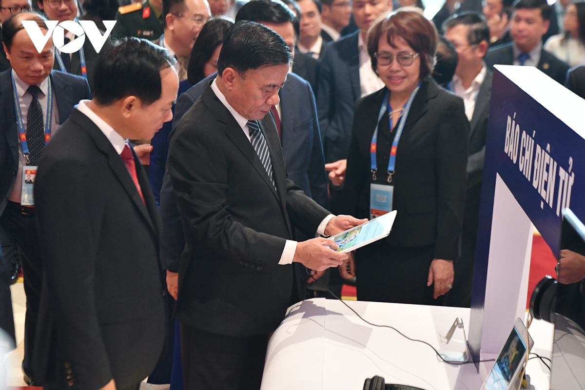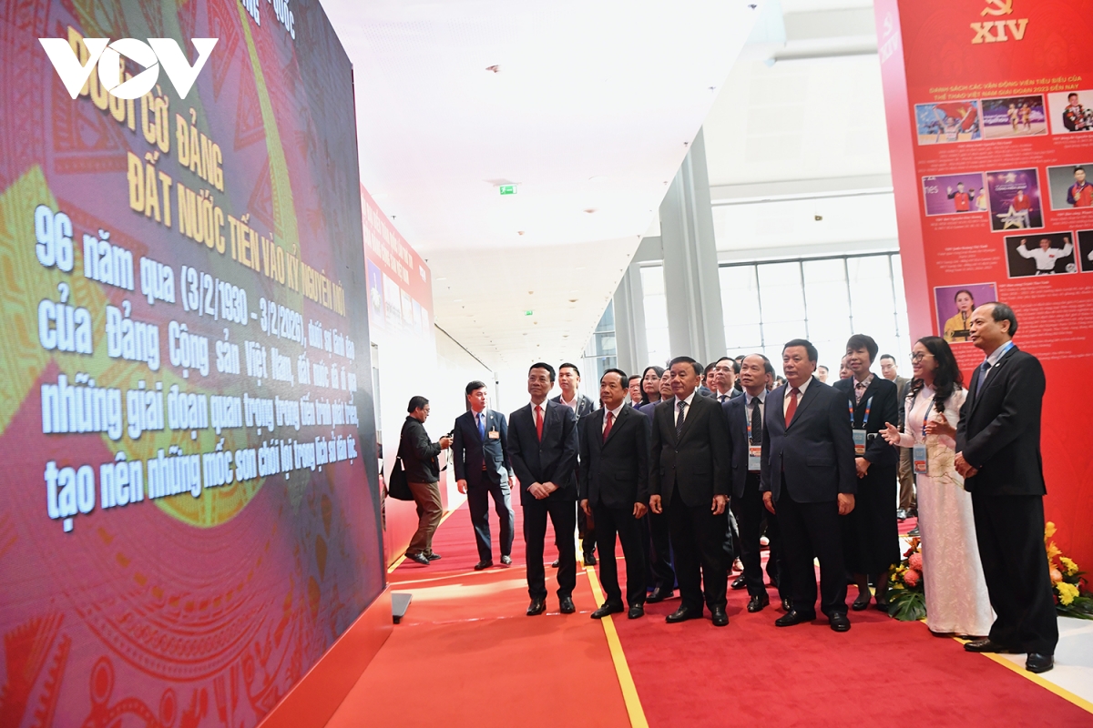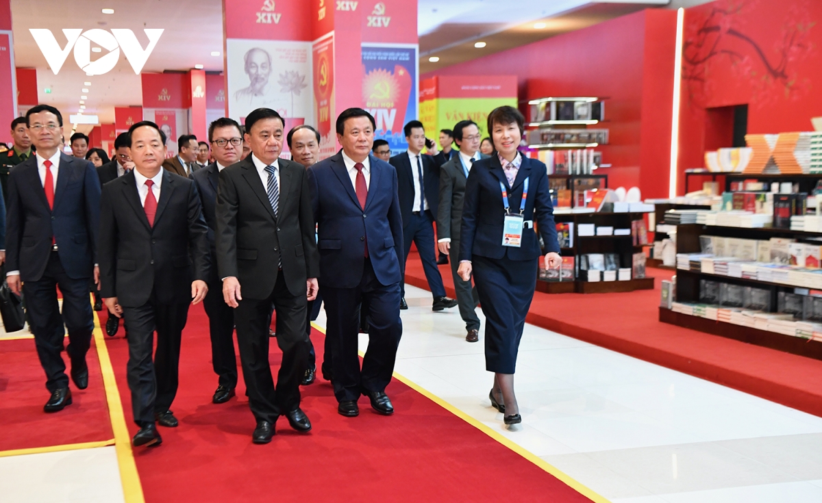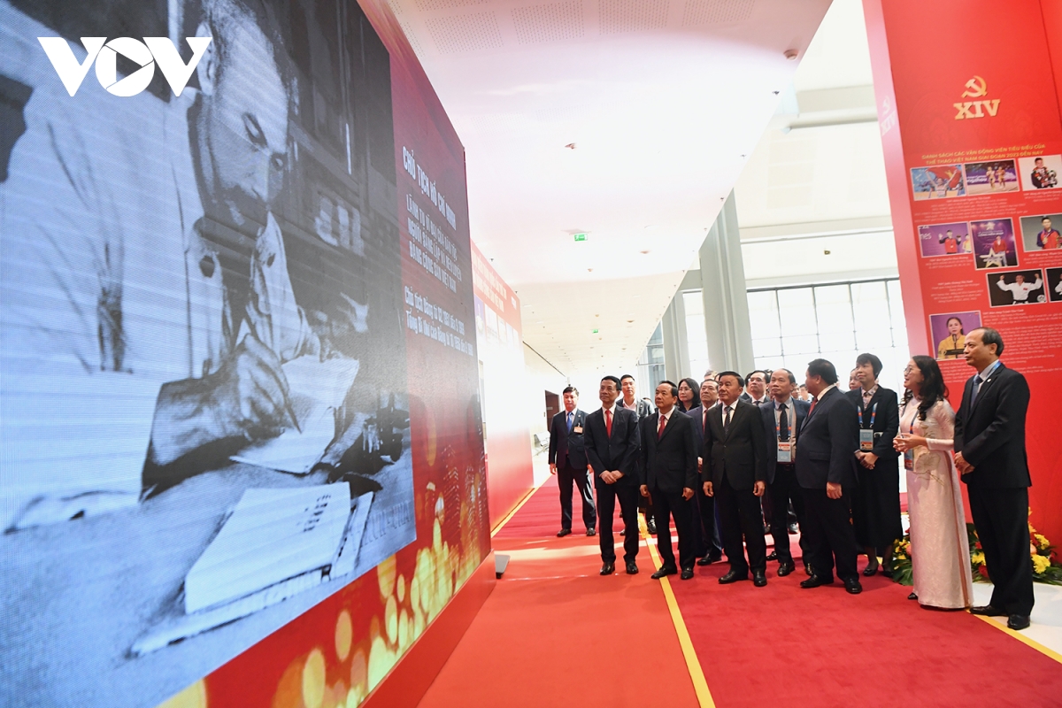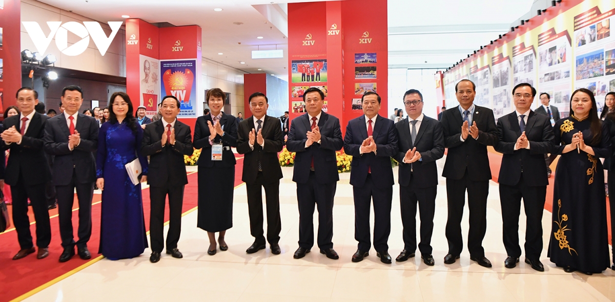 VOV.VN - Lãnh đạo Đảng, Nhà nước cùng đông đảo đại biểu đã tham quan Triển lãm “Từ Đại hội đến Đại hội”; Khu trưng bày sách, báo; Khu triển lãm ảnh “Dưới cờ Đảng, đất nước tiến vào kỷ nguyên mới”; Lễ phát hành đặc biệt bộ tem bưu chính chào mừng Đại hội Đại biểu toàn quốc lần thứ XIV của Đảng.