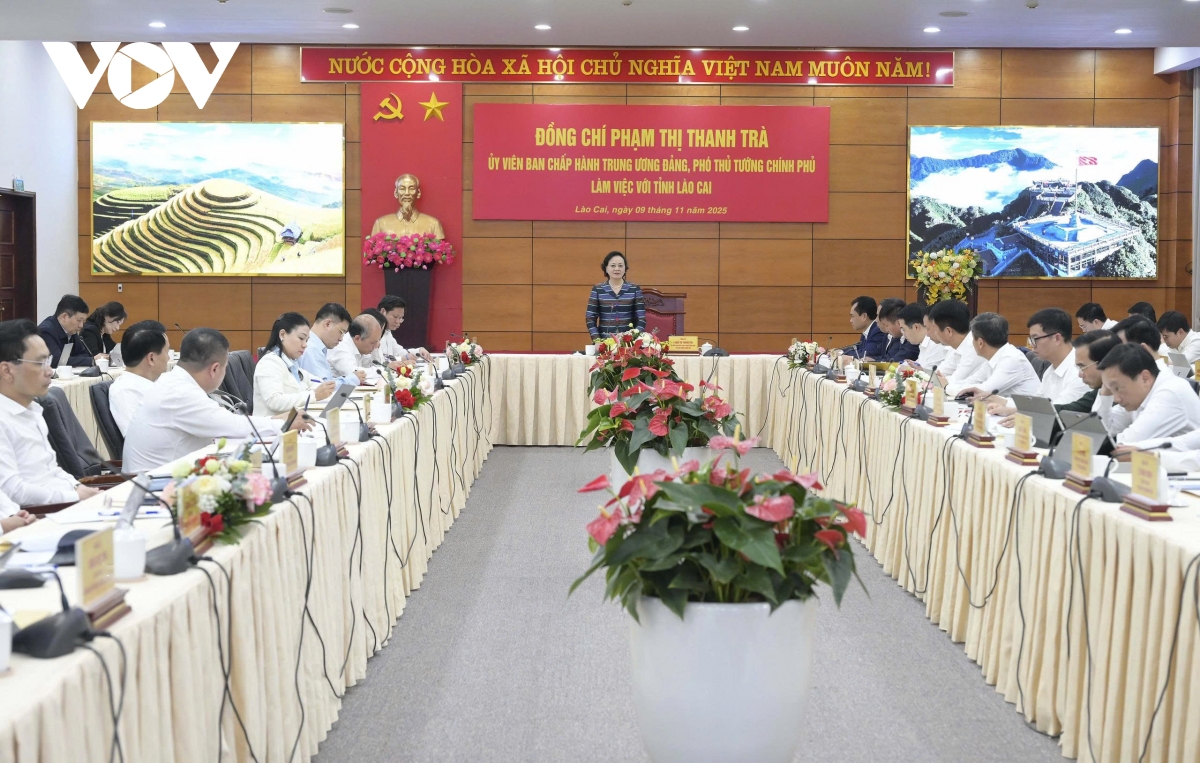 VOV.VN - Chiều 9/11, tại Lào Cai, Phó Thủ tướng Chính phủ Phạm Thị Thanh Trà đã chủ trì buổi làm việc quan trọng với lãnh đạo tỉnh, đưa ra những định hướng chiến lược nhằm khơi thông tiềm năng, tạo ra cú hích phát triển đột phá cho địa phương trong giai đoạn mới.