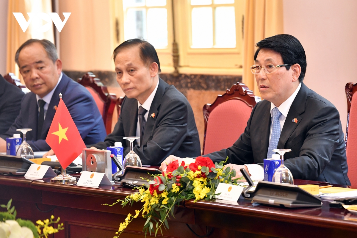 Chủ tịch nước Lương Cường phát biểu chào mừng Toàn quyền Australia Sam Mostyn thăm cấp Nhà nước tới Việt Nam.