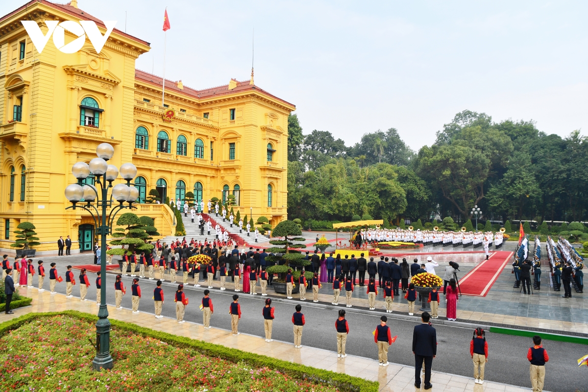 VOV.VN - Sáng 1/12, tại Phủ Chủ tịch, Chủ tịch nước Lương Cường chủ trì lễ đón chính thức Quốc vương Brunei Haji Hassanal Bolkiah thăm cấp Nhà nước tới Việt Nam.