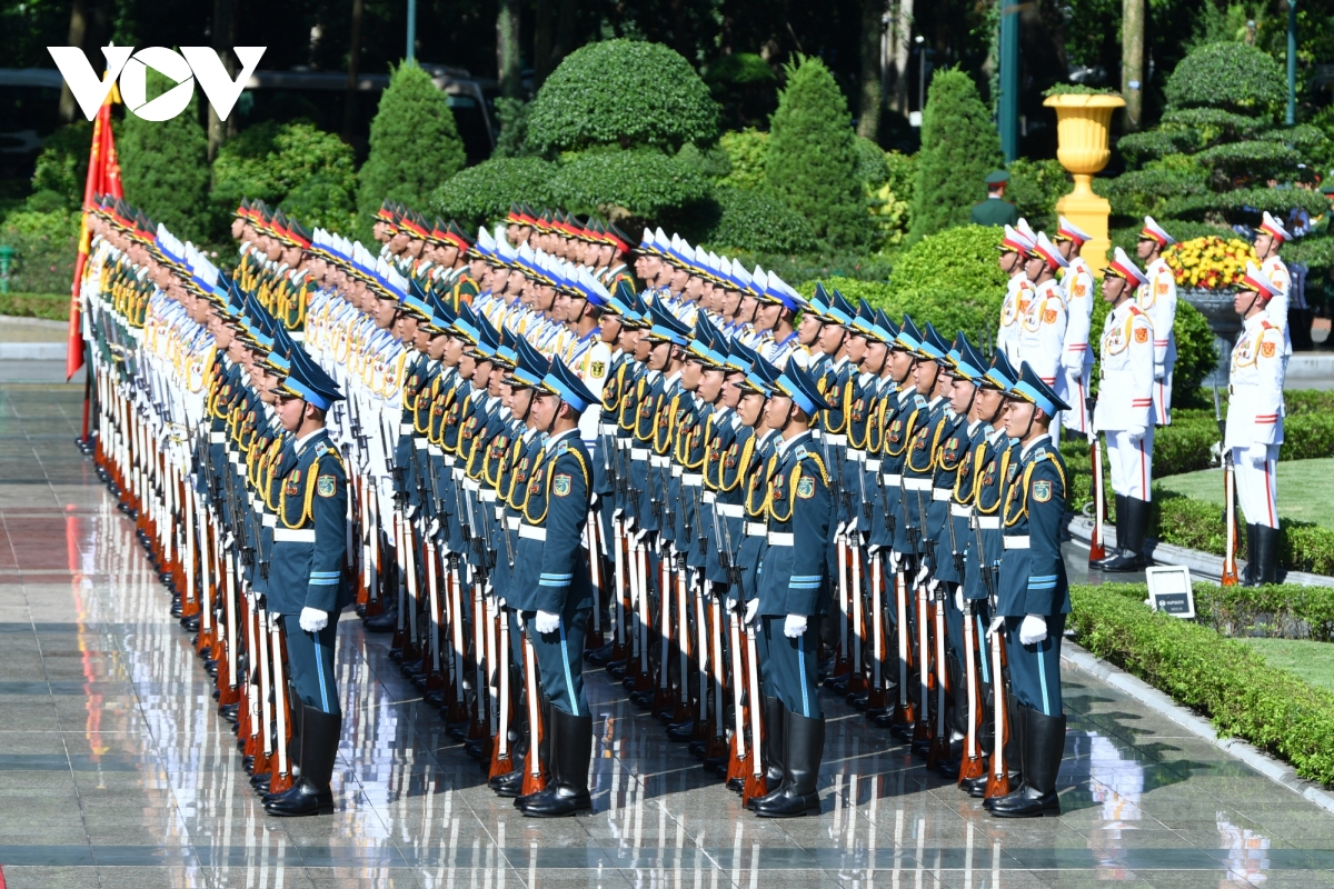 Chủ tịch nước Lương Cường mời Quốc vương Jordan Abdullah II Ibn Al Hussein duyệt đội danh dự Quân đội nhân dân Việt Nam.