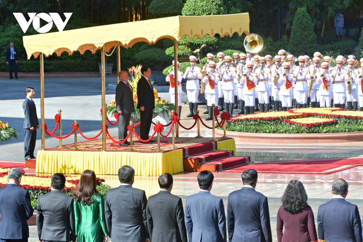 VOV.VN - Chiều 12/11, tại Phủ Chủ tịch, Chủ tịch nước Lương Cường đã chủ trì lễ đón Quốc vương Jordan Abdullah II Ibn Al Hussein thăm chính thức Việt Nam.