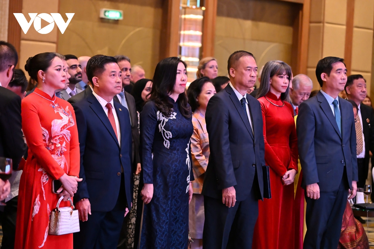 Đại sứ Phạm Việt Hùng cùng các vị khách quý đã nâng ly chúc mừng nhân dịp 80 năm ngày Quốc khánh Việt Nam. Đây không chỉ là dịp tôn vinh lịch sử và thành tựu của Việt Nam, mà còn là dấu mốc khẳng định vị thế quốc gia, mở ra những chương tiếp theo trong hành trình hợp tác và hội nhập sâu rộng trên trường quốc tế.