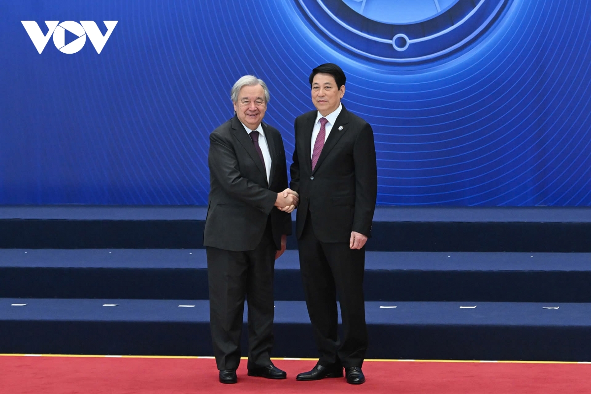Chủ tịch nước Lương Cường đón Tổng Thư ký Liên hợp quốc António Guterres dự Lễ mở ký Công ước Hà Nội
