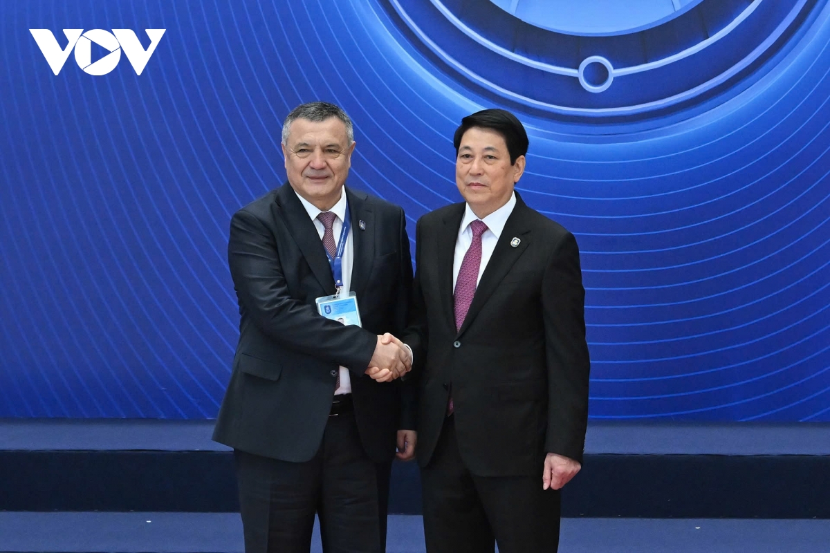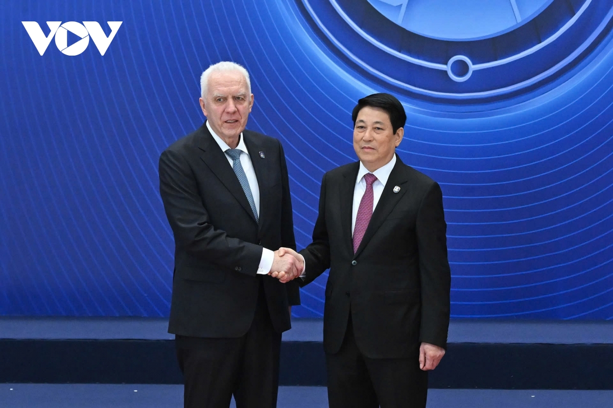 Chủ tịch nước Lương Cường đón các đại biểu tham dự Lễ mở ký Công ước Hà Nội