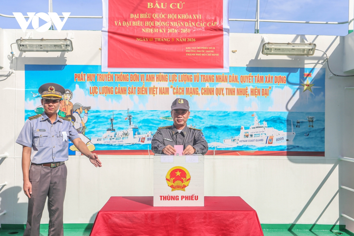 Trên boong tàu KN-290, cử tri trẻ Lê Quang Đức xúc động chia sẻ: "Được tham gia bầu cử giữa biển khơi, cùng anh em cán bộ trên tàu, tôi cảm thấy vừa phấn khởi, vừa tự hào. Thực hiện nhiệm vụ trong lực lượng kiểm ngư, chúng tôi đối mặt với không ít khó khăn. Đó là nỗi nhớ nhà khi phải đón Tết xa gia đình; là những ngày biển động, sóng lớn đòi hỏi mỗi người phải giữ vững sức khỏe và tinh thần để hoàn thành nhiệm vụ. Vì vậy, thông qua lá phiếu của mình, tôi mong muốn những đại biểu trúng cử có thể thấu hiểu, lắng nghe và đại diện cho tiếng nói của cán bộ, chiến sĩ và bà con ngư dân đang ngày đêm bám biển".