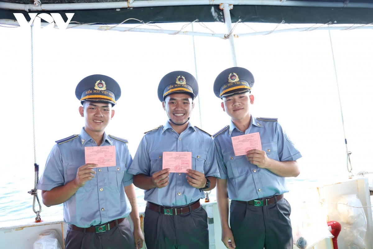 Giữa trùng khơi, họ không chỉ giữ gìn chủ quyền thiêng liêng, thực hiện nhiệm vụ quan trọng trong công tác phòng chống khai thác thủy hải sản trái phép mà còn thực hiện một cách tự hào quyền, nghĩa vụ của người công dân Việt Nam trên vùng biên giới biển thân yêu của Tổ quốc.