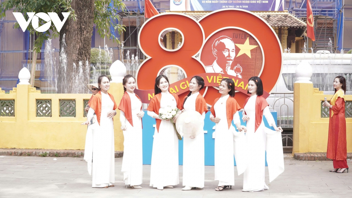 Còn những du khách này cho biết, chụp ảnh tại đây, dấu mốc lịch sử – 80 năm là một chặng đường dài ghi dấu sự hình thành, trưởng thành và đóng góp của ngành ngoại giao Việt Nam. Đây là cách thể hiện lòng biết ơn với các thế hệ cán bộ ngoại giao đã hy sinh, cống hiến để xây dựng vị thế đất nước. Khung cảnh cổng Bộ Ngoại giao là biểu tượng gắn liền với niềm tự hào về truyền thống ngoại giao