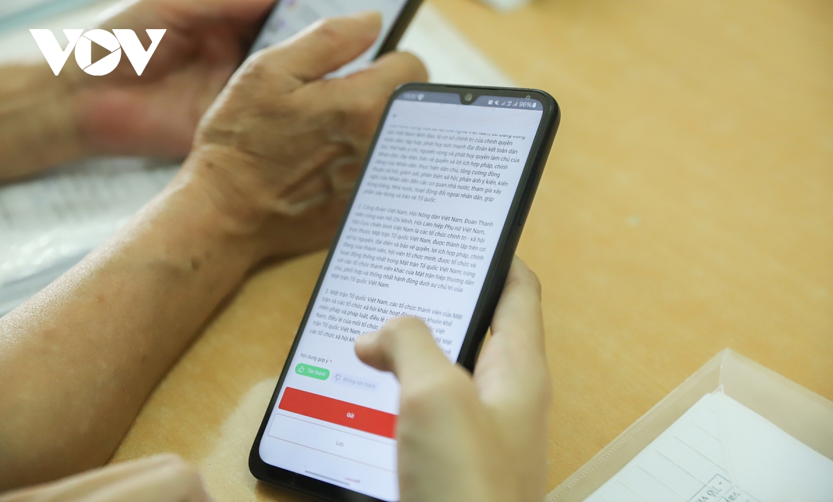 Bà Nguyễn Thị Hiền cho biết: "Tất cả mọi nội dung đều được lập trình sẵn, mình chỉ cần tích vào sau khi đã điền đầy đủ thông tin. Rất nhanh và đơn giản. Bản thân chúng tôi khi biết, và nhiều người khác cũng biết, có thể hướng dẫn để cùng đóng góp ý kiến. Chúng tôi cũng xác định đây là nhiệm vụ chính trị quan trọng. Đại đa số nhân dân bây giờ đều sử dụng điện thoại thông minh, không cần phải đi đâu cả mà có thể trực tiếp làm ngay trên đó."