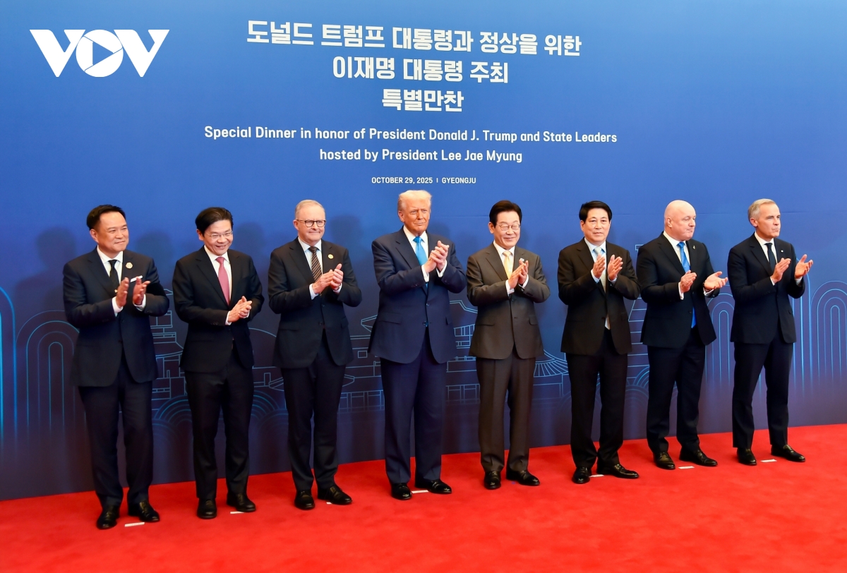 Từ 29/10-1/11, Chủ tịch nước Lương Cường có chuyến công tác dự Tuần lễ cấp cao APEC lần thứ 32 và làm việc song phương tại Hàn Quốc. Chủ tịch nước Lương Cường đã tham dự, đối thoại và có các bài phát biểu quan trọng tại các phiên họp Hội nghị cấp cao APEC, cũng như Hội nghị thượng đỉnh doanh nghiệp APEC 2025. Chủ tịch nước Lương Cường cũng có một loạt các hoạt động tiếp xúc với lãnh đạo các nền kinh tế APEC. Trong ảnh: Chủ tịch nước Lương Cường dự tiệc tối chào mừng các nhà Lãnh đạo APEC do Tổng thống Hàn Quốc Lee Jae Myung chủ trì.