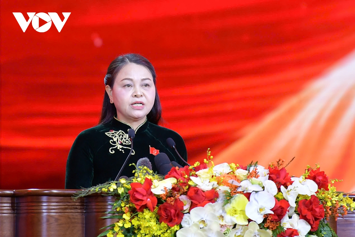 Thay mặt đoàn Chủ tịch Ủy ban Trung ương Mặt trận Tổ quốc Việt Nam, Phó Chủ tịch - Tổng Thư ký Nguyễn Thị Thu Hà đã phát biểu hưởng ứng phát động thi đua.