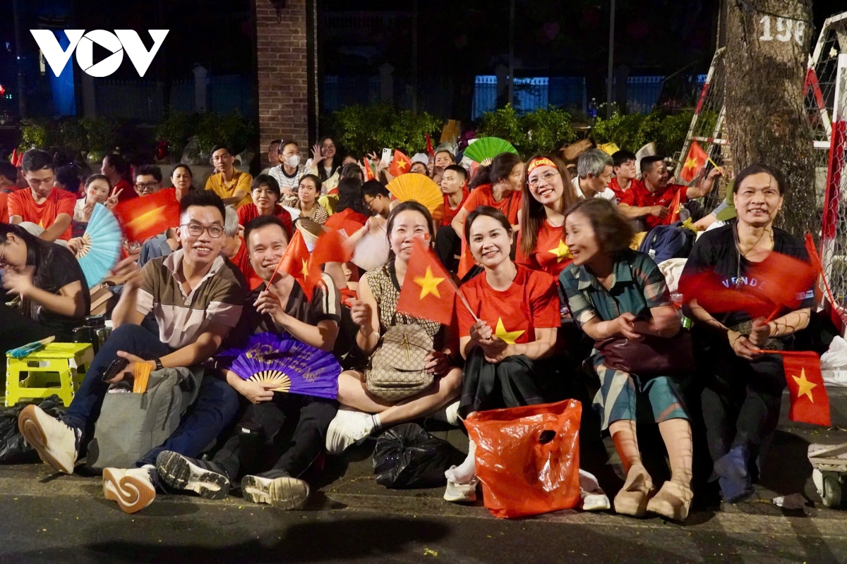 Biển người "trực chiến" xuyên đêm dọc các tuyến đường trung tâm Quận 1, TP.HCM để chờ đợi lễ diễu binh, diễu hành.
