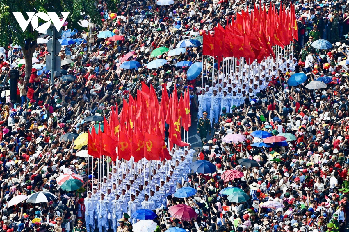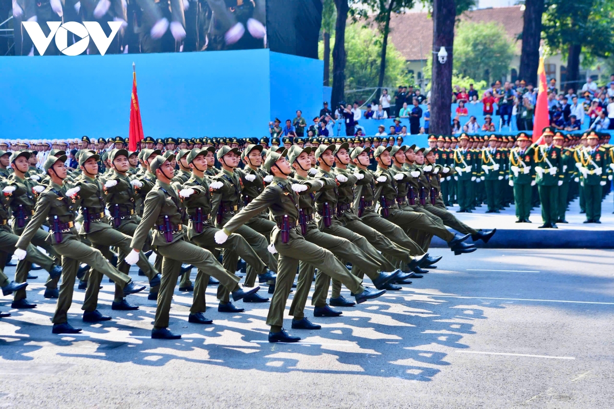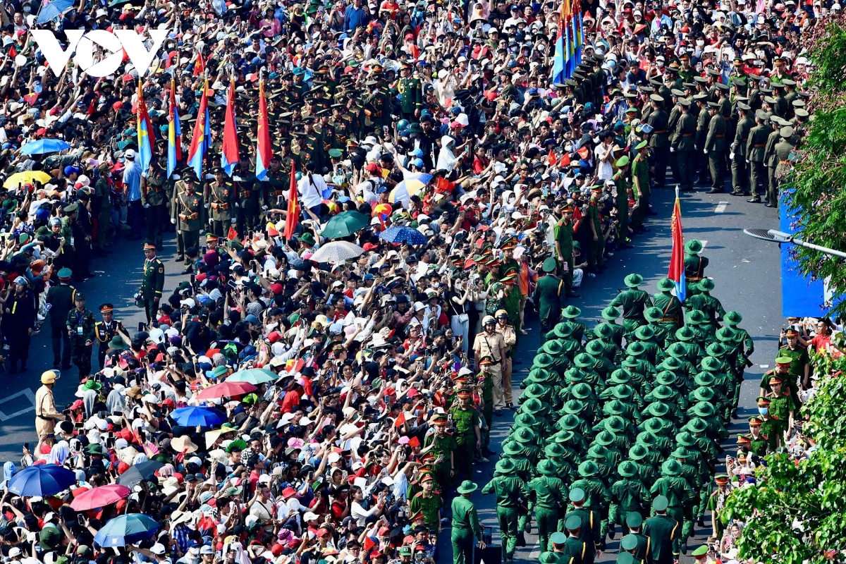 Hàng chục nghìn người dân đứng dọc hai bên đường theo lộ trình di chuyển của các khối diễu binh, diễu hành để chào đón các cán bộ, chiễn sĩ, quần chúng tham gia phục vụ đại lễ. Khi các khối tiến đến, cả tuyến phố như vỡ òa, mọi người hò reo, đưa tay chào. Các chiến sĩ vừa đi đều bước, vừa mỉm cười chào người dân hai bên đường.