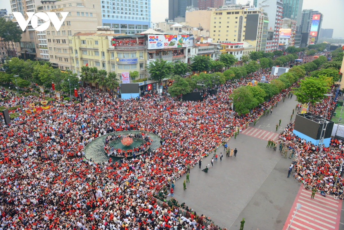 Biển người "nhuộm đỏ" các ngả đường ở trung tâm TP.HCM