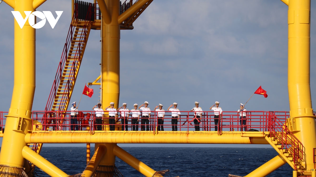 Lời tâm sự như một luồng điện chạy qua trái tim những người có mặt trên tàu. Phía bên kia những giàn thép sừng sững, tiếng nghẹn ngào của cán bộ, chiến sĩ đáp lại qua loa khiến không gian giữa trùng khơi như lắng đọng.