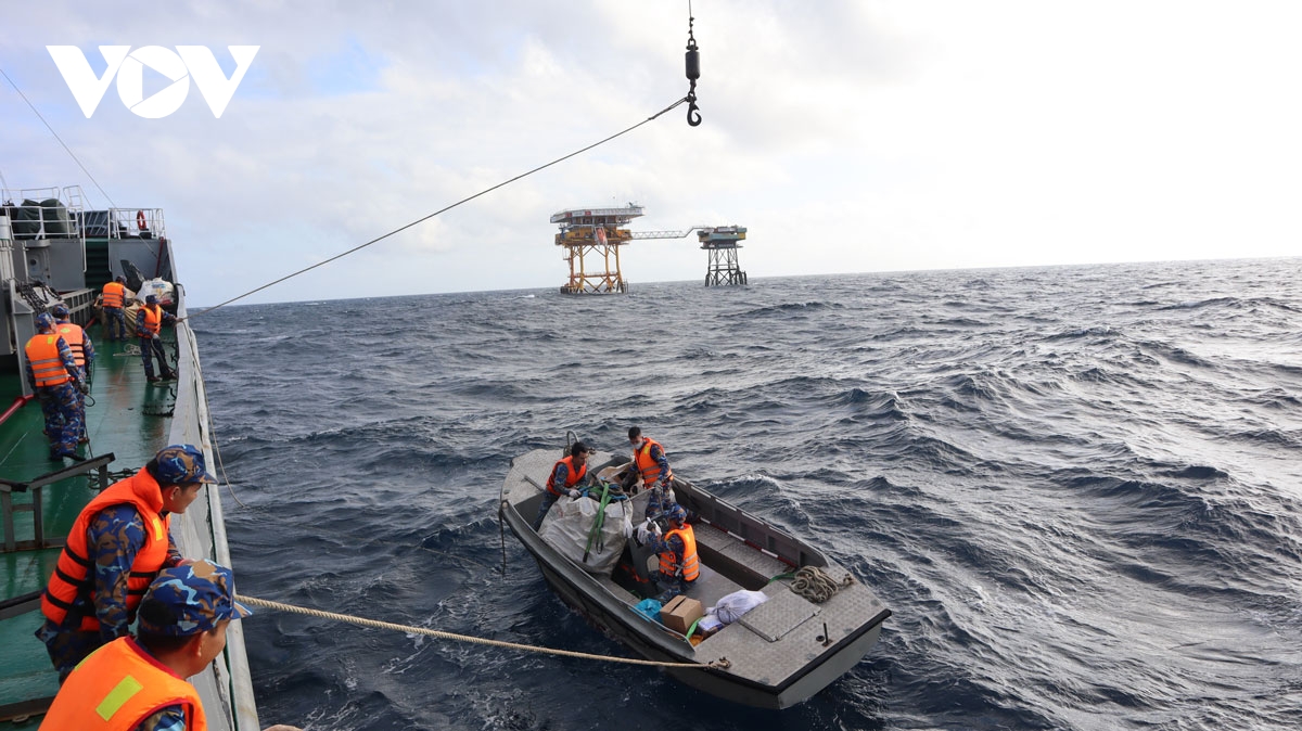 Đáp lại, tiếng chỉ huy các nhà giàn vang lên dõng dạc qua tần số vô tuyến: "Đoàn công tác từ đất liền ra thăm, chúc Tết, động viên lực lượng đang làm nhiệm vụ trên nhà giàn. Đây là món quà tình nghĩa vô giá, là nguồn cổ vũ động viên to lớn dành cho chúng tôi".