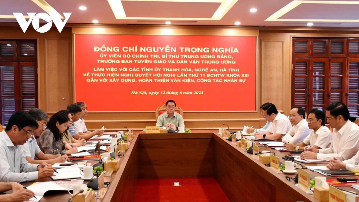 Kết luận buổi làm việc, Ủy viên Bộ chính trị, Bí thư Trung ương Đảng, Trưởng Ban Tuyên giáo và Dân vận Trung ương Nguyễn Trọng Nghĩa đánh giá cao công tác chuẩn bị, tinh thần trách nhiệm, sự chủ động tích cực của các tỉnh Thanh Hóa, Nghệ An và Hà Tĩnh trong lãnh đạo, chỉ đạo tổ chức thực hiện Nghị quyết Hội nghị lần thứ 11 của Ban chấp hành Trung ương Khóa 13. Ba tỉnh Thanh Hóa, Nghệ An và Hà Tĩnh đã quán triệt đồng bộ, hiệu quả và tổ chức học tập nghiêm túc Nghị quyết Trung ương lần thứ 11 đến cán bộ, đảng viên, đã định hướng tuyên truyền thường xuyên, liên tục tạo sự thống nhất cao trong đảng bộ và sự đồng thuận trong nhân dân.