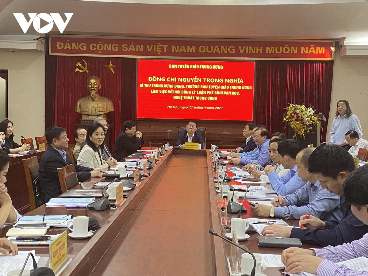 Phát biểu tại buổi làm việc, Trưởng Ban Tuyên giáo Trung ương Nguyễn Trọng Nghĩa nêu rõ, Đảng luôn luôn quan tâm đến văn học - nghệ thuật, sau Đại hội Đảng lần thứ XIII, sự quan tâm đó ngày càng tăng cường, nâng cao với những mong muốn, quyết tâm rất lớn. Đảng yêu cầu công tác phê bình, lý luận văn học nghệ thuật phải gắn chặt với thực tiễn.