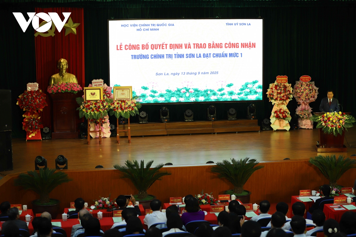 VOV.VN - Ngày 13/9, ông Nguyễn Xuân Thắng, Ủy viên Bộ Chính trị, Giám đốc Học viện Chính trị quốc gia Hồ Chí Minh, Chủ tịch Hội đồng lý luận Trung ương đã trao Bằng công nhận trường Chính trị tỉnh Sơn La đạt chuẩn mức 1.