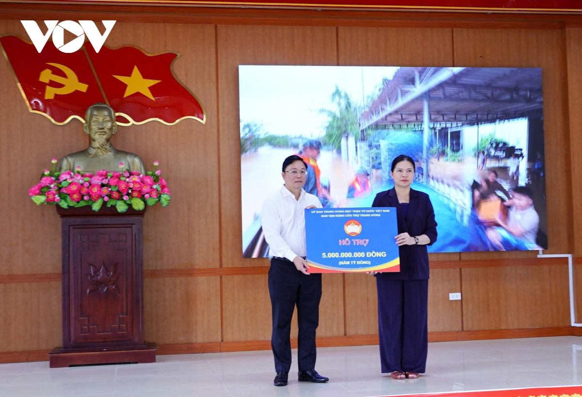 Đoàn công tác trao 5 tỷ đồng trao qua Ủy ban MTTQ Việt Nam TP Đà Nẵng gửi đến đồng bào vùng lũ.