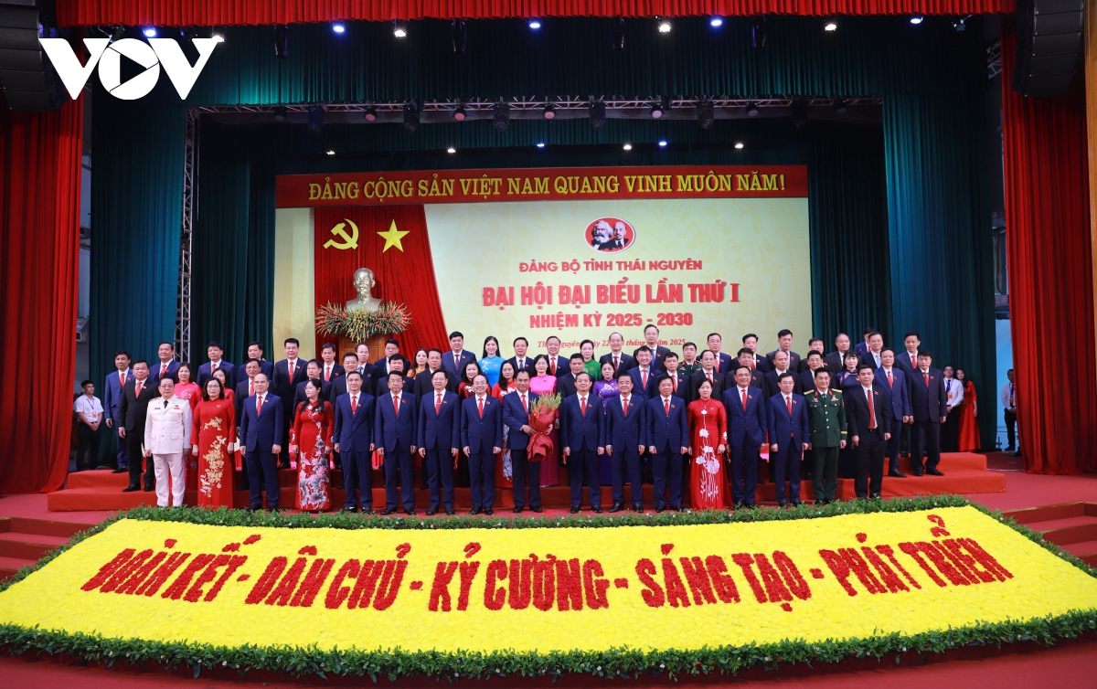 VOV.VN - Ngày 23/9, Đại hội đại biểu Đảng bộ tỉnh Thái Nguyên đã công bố các quyết định của Bộ Chính trị, chỉ định tham gia Ban chấp hành, Ban thường vụ, Bí thư, Phó Bí thư, Ủy viên Ủy ban Kiểm tra, Chủ nhiệm, Phó Chủ nhiệm Ủy ban Kiểm tra Tỉnh ủy Thái Nguyên nhiệm kỳ 2025-2030, đồng thời ra mắt Ban chấp hành Đảng bộ tỉnh Thái Nguyên.
