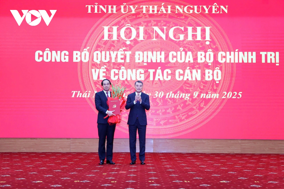 VOV.VN - Chiều 30/9, ông Trịnh Xuân Trường, Bí thư Tỉnh ủy Lào Cai được Bộ Chính trị điều động, phân công, chỉ định giữ chức Bí thư Tỉnh ủy Thái Nguyên nhiệm kỳ 2025-2030. Ủy viên Bộ Chính trị, Trưởng ban Tổ chức Trung ương Lê Minh Hưng dự và trao quyết định.