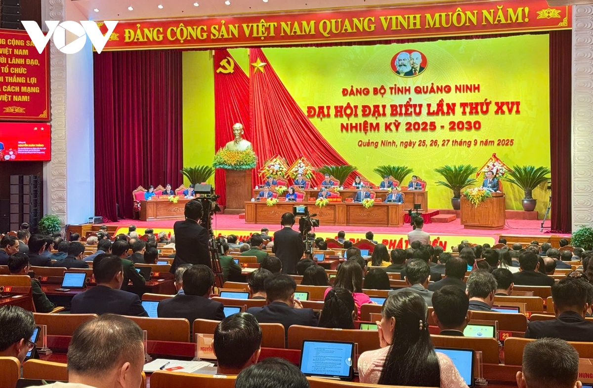 VOV.VN - Sáng 26/9, Đại hội Đại biểu Đảng bộ tỉnh Quảng Ninh lần thứ XVI, nhiệm kỳ 2025-2030 khai mạc với phương châm “Đoàn kết-Dân chủ-Kỷ cương-Đột phá-Phát triển”. Đại hội khẳng định quyết tâm thực hiện thắng lợi các mục tiêu phát triển, xây dựng Quảng Ninh trở thành thành phố trực thuộc Trung ương trước năm 2030.