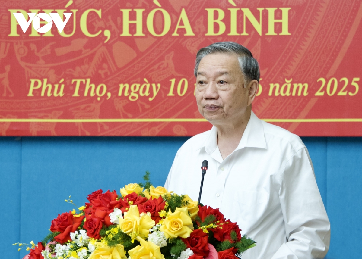 VOV.VN - Ngày 10/6, tại Phú Thọ, Tổng Bí thư Tô Lâm và Đoàn công tác Trung ương đã làm việc với Ban Thường vụ Tỉnh ủy các tỉnh Phú Thọ, Vĩnh Phúc, Hòa Bình. VOV trân trọng giới thiệu toàn văn phát biểu của Tổng Bí thư Tô Lâm tại buổi làm việc.