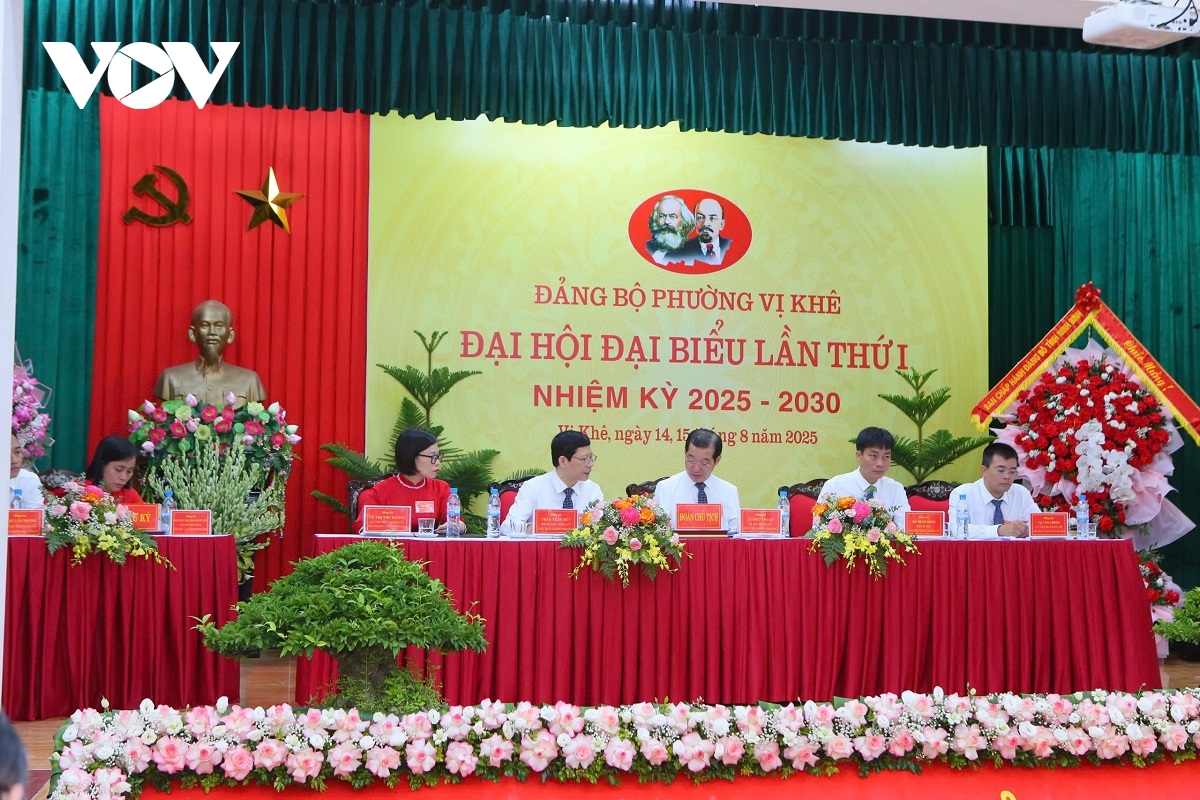 VOV.VN - Ngày 15/8, Đảng bộ phường Vị Khê (Ninh Bình) tổ chức Đại hội lần thứ I, nhiệm kỳ 2025-2030. Phát huy thế mạnh làng nghề hoa cây cảnh, Đại hội đề ra 6 nhiệm vụ trọng tâm, 3 khâu đột phá, hướng tới xây dựng đô thị văn minh, phát triển bền vững.