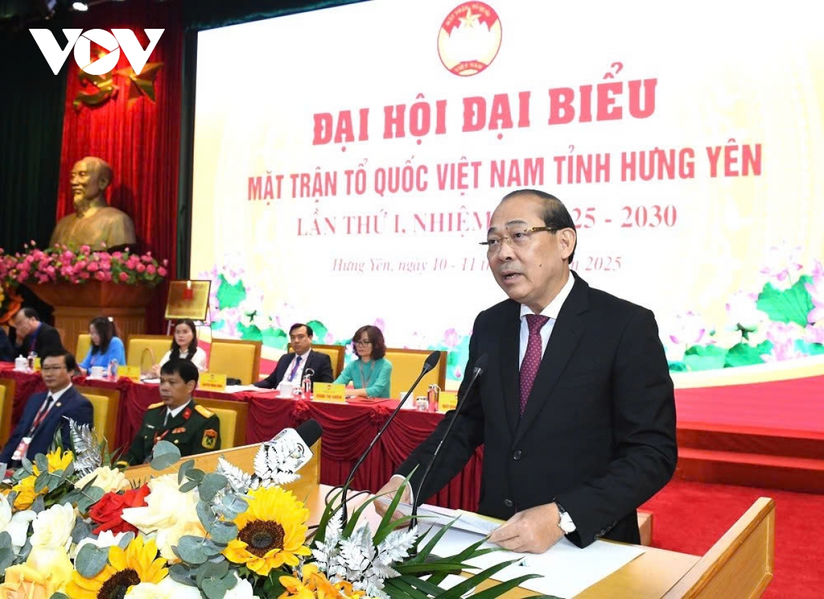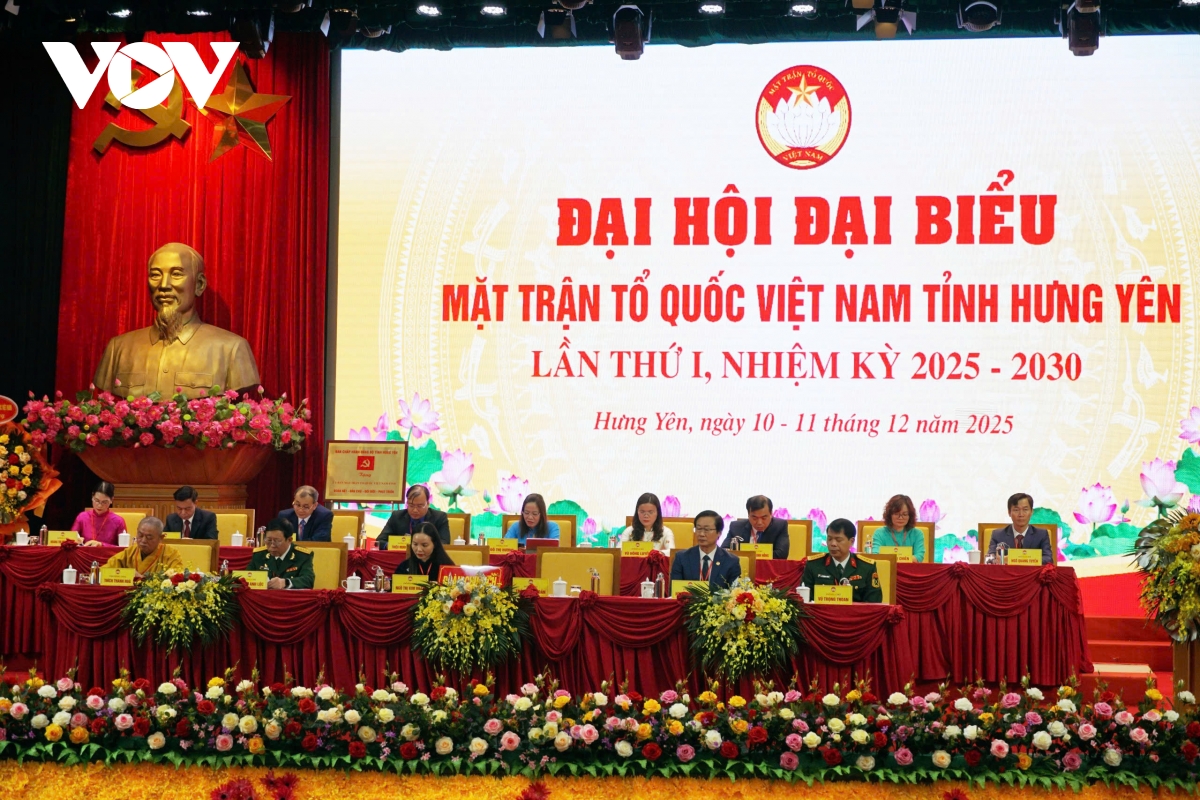 VOV.VN - Sáng 11/12, tại Trung tâm Hội nghị tỉnh Hưng Yên, Đại hội đại biểu MTTQ Việt Nam tỉnh lần thứ I, nhiệm kỳ 2025-2030 đã diễn ra phiên trọng thể.