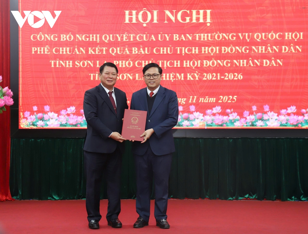 VOV.VN - Chiều 29/11, Thường trực HĐND tỉnh Sơn La tổ chức Hội nghị công bố nghị quyết của Ủy ban Thường vụ Quốc hội phê chuẩn kết quả bầu Chủ tịch và Phó Chủ tịch HĐND tỉnh, nhiệm kỳ 2021-2026.