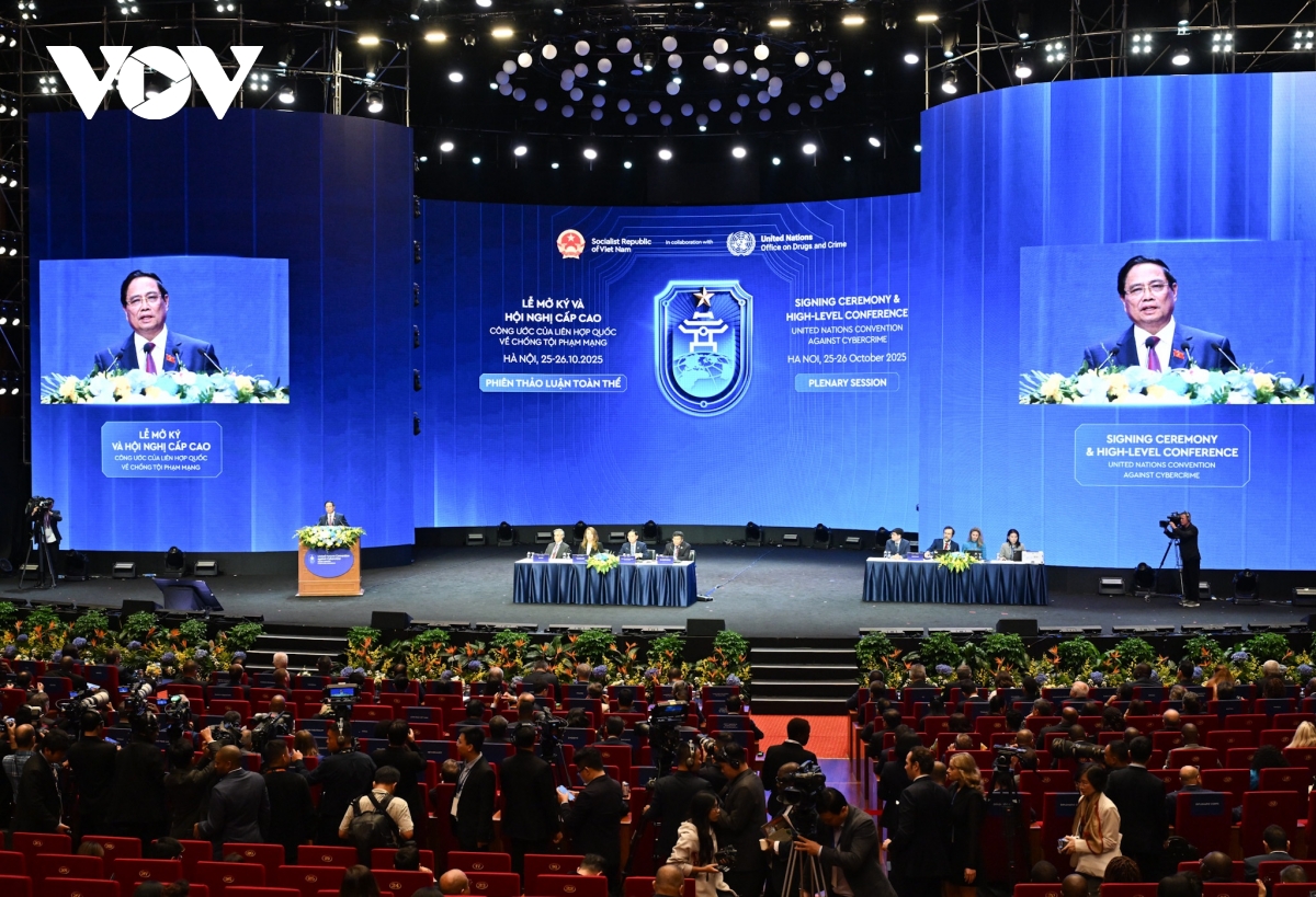 VOV.VN - Chiều nay (25/10), trong khuôn khổ Lễ mở ký Công ước của Liên Hợp Quốc về chống tội phạm mạng (Công ước Hà Nội), phiên thảo luận toàn thể đã diễn ra, với sự tham gia của Thủ tướng Phạm Minh Chính, Tổng thư ký Liên Hợp Quốc António Guterres và đại diện nhiều quốc gia, tổ chức quốc tế.