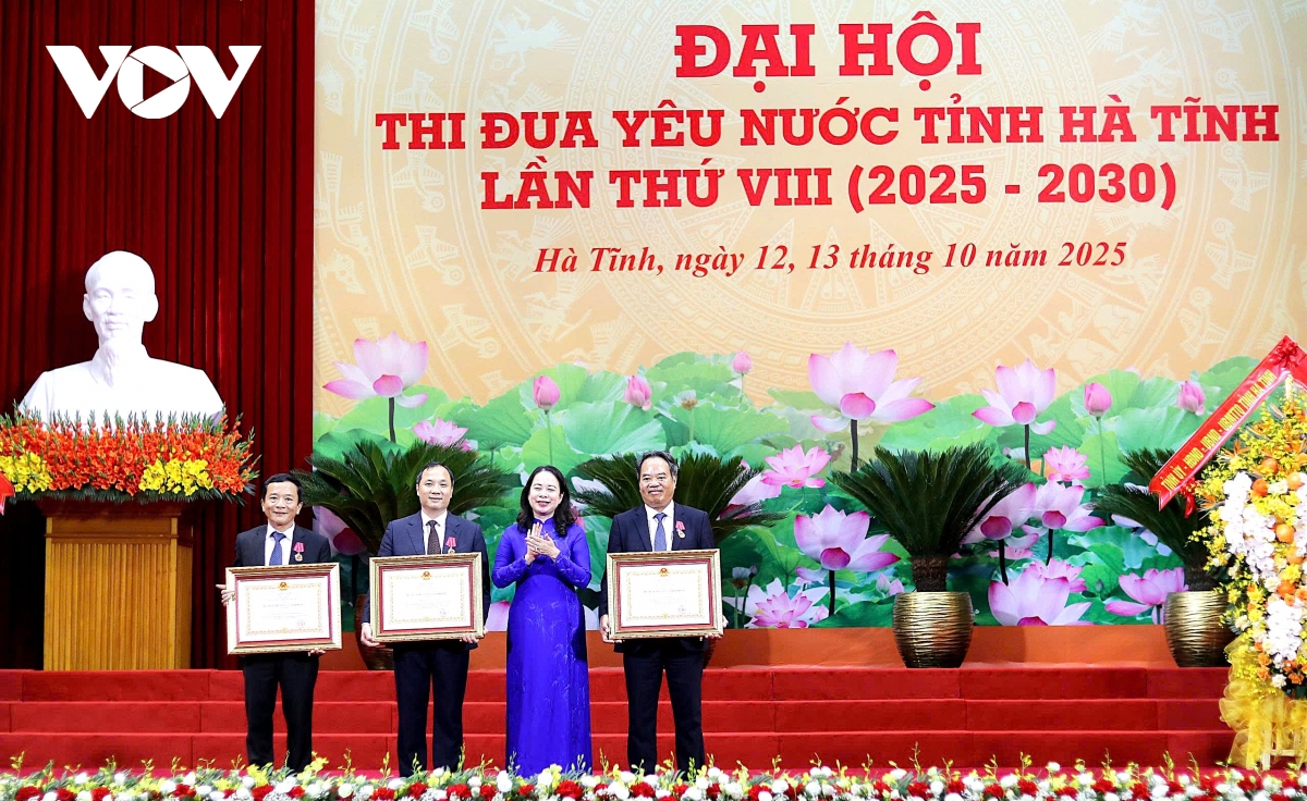 VOV.VN - Phó Chủ tịch nước Võ Thị Ánh Xuân nhấn mạnh, Đại hội Thi đua yêu nước tỉnh Hà Tĩnh lần thứ VIII, giai đoạn 2025 – 2030 thực sự là lời hiệu triệu mạnh mẽ, kêu gọi cán bộ, chiến sĩ và nhân dân trong tỉnh đoàn kết, chung sức, đồng lòng vì một tương lai tươi sáng.
