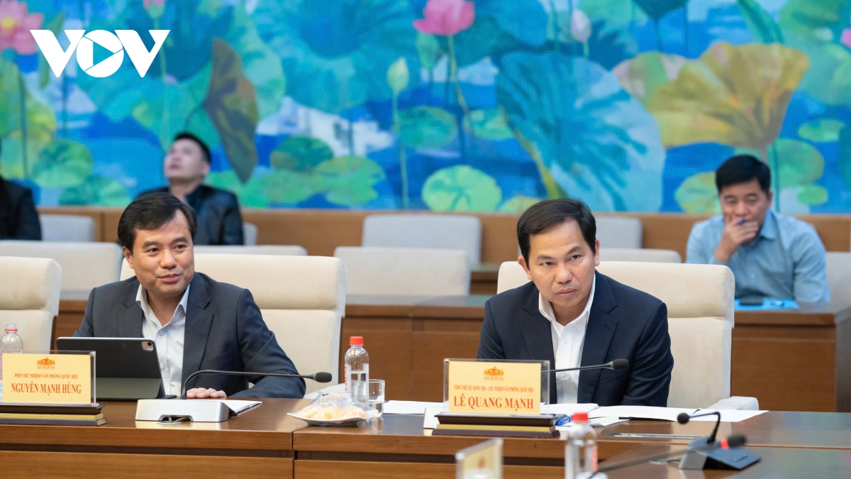 Chủ nhiệm Văn phòng Quốc hội Lê Quang Mạnh và Phó Chủ nhiệm Văn phòng Quốc hội Nguyễn Mạnh Hùng