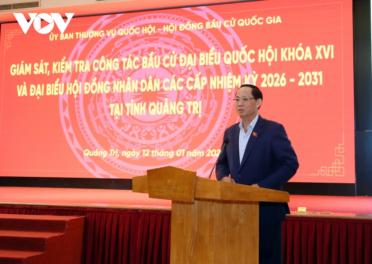 VOV.VN - Sáng 12/1, Đoàn giám sát, kiểm tra công tác bầu cử đại biểu Quốc hội khóa XVI và đại biểu Hội đồng nhân dân các cấp nhiệm kỳ 2026- 2031 do Thượng tướng Trần Quang Phương, Phó Chủ tịch Quốc hội, Ủy viên Hội đồng Bầu cử Quốc gia làm Trưởng đoàn làm việc tại tỉnh Quảng Trị.