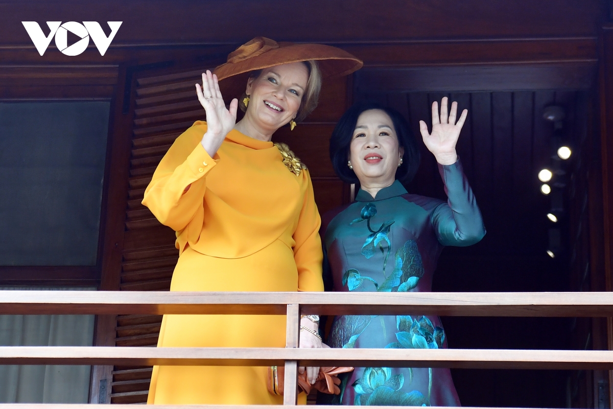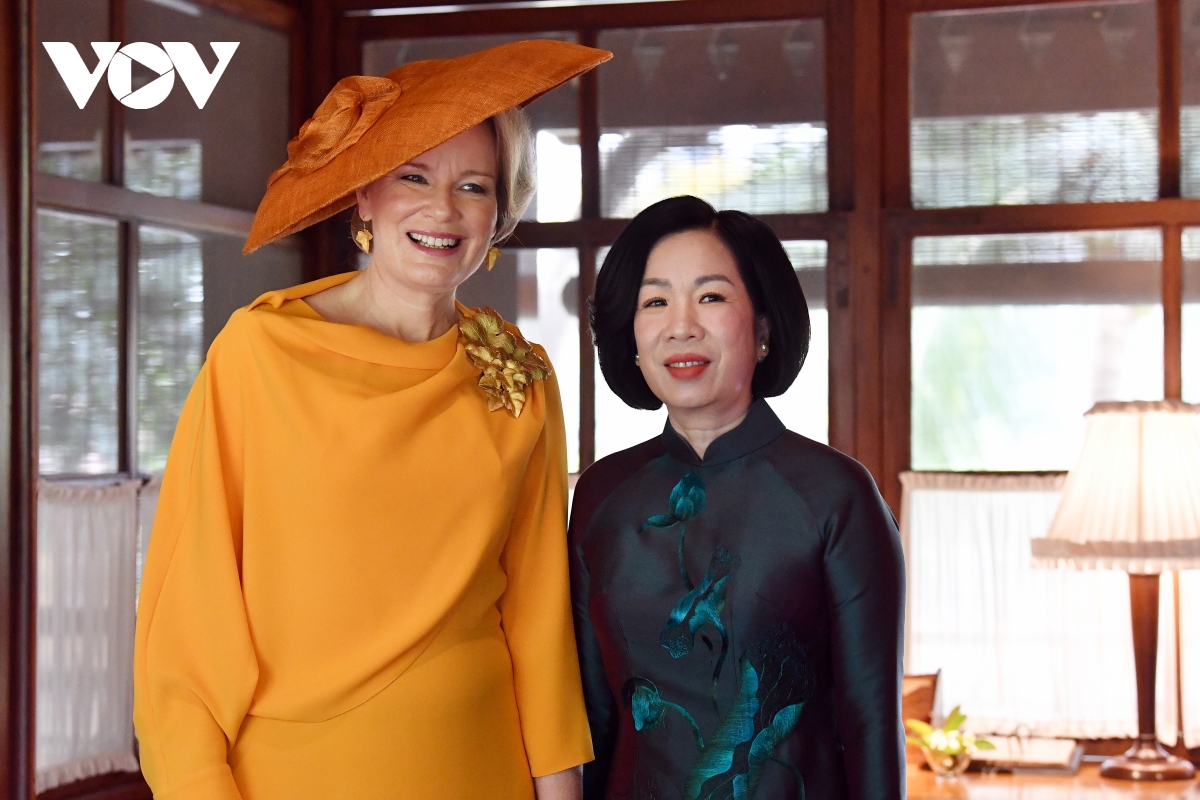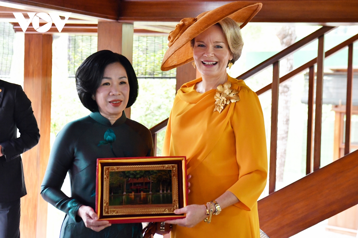 VOV.VN - Ngày 1/4, Phu nhân Chủ tịch nước Lương Cường - bà Nguyễn Thị Minh Nguyệt đã cùng Hoàng hậu Bỉ Mathilde tới thăm Khu Di tích Chủ tịch Hồ Chí Minh.