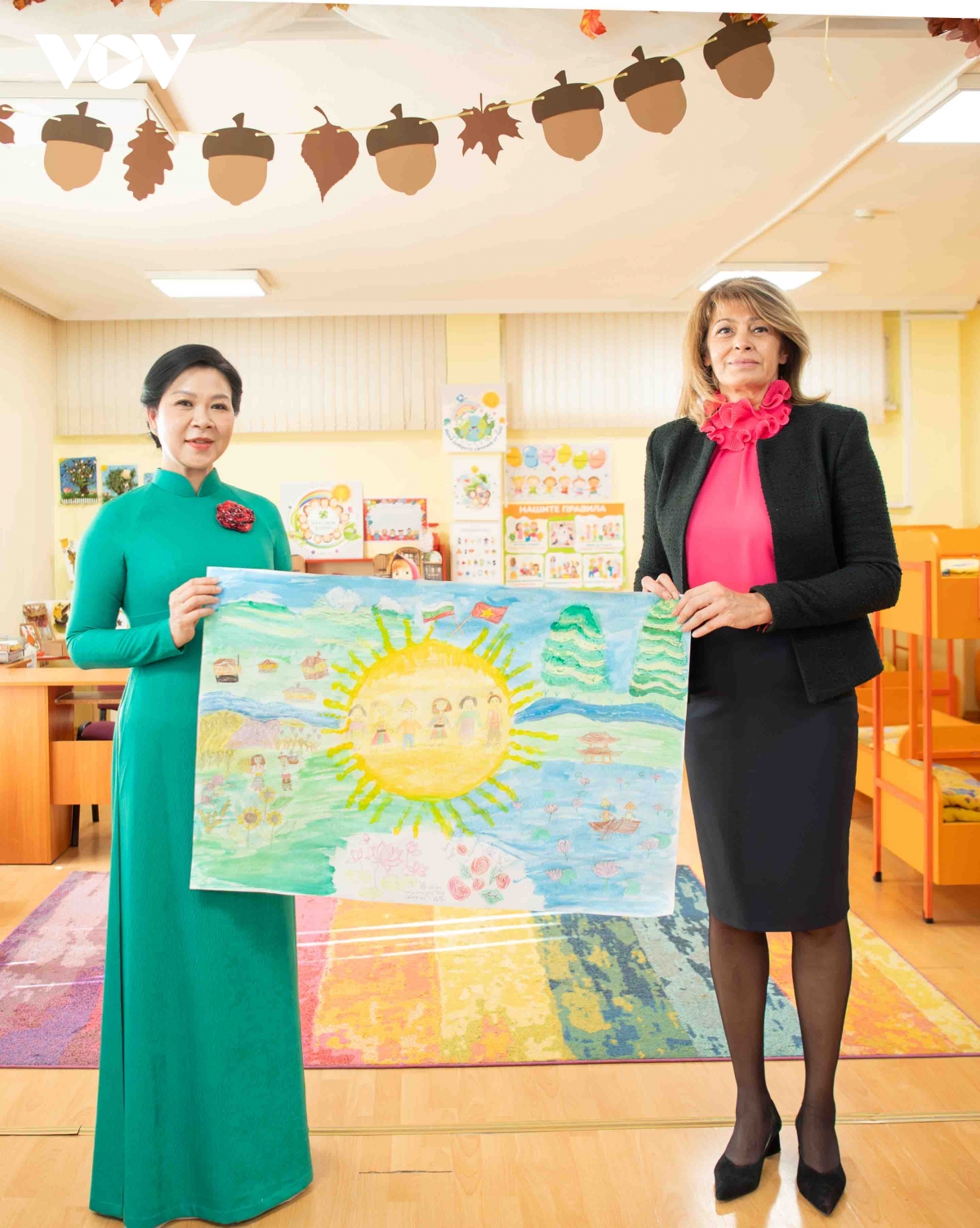 Tại lớp học vẽ, hai Phu nhân cùng các em nhỏ hoàn thiện bức tranh chung về tình hữu nghị Việt Nam - Bulgaria. Phu nhân Ngô Phương Ly chọn hoa sen - biểu tượng của sự thanh khiết, kiên cường và sức sống mãnh liệt của dân tộc Việt. Phu nhân Desislava Radeva chọn hoa hồng Bulgaria - biểu trưng cho vẻ đẹp, tình yêu và bản sắc văn hóa của "xứ sở hoa hồng".
