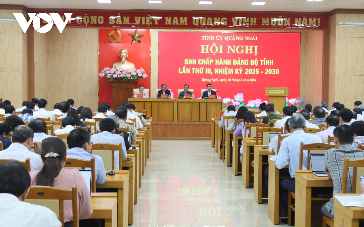 Sáng 29/3, Tỉnh ủy Quảng Ngãi tổ chức Hội nghị lần thứ III, nhiệm kỳ 2025-2030, đánh giá tình hình thực hiện nhiệm vụ quý I/2026 và thảo luận, cho ý kiến đối với 4 dự thảo nghị quyết cùng kế hoạch đầu tư công trung hạn.