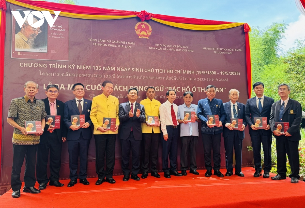 VOV.VN - Ngày 18/5, tại Khu di tích Chủ tịch Hồ Chí Minh tỉnh Udon Thani, Tổng Lãnh sự quán Việt Nam tại Khon Kaen phối hợp với Nhà xuất bản Giáo dục Việt Nam tổ chức lễ ra mắt cuốn sách song ngữ Việt - Thái mang tên “Bác Hồ ở Thái Lan” nhân kỷ niệm 135 năm ngày sinh của Chủ tịch Hồ Chí Minh (19/5/1890-19/5/2025).