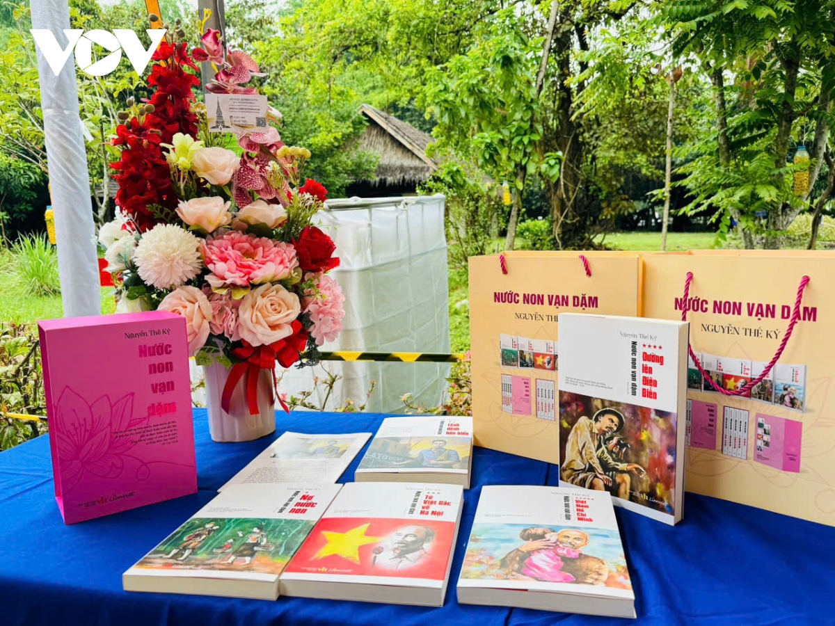 Bộ tiểu thuyết về Bác Hồ có tựa đề "Nước non vạn dặm" của tác giả Nguyễn Thế Kỷ được trưng bày tại Khu di tích Chủ tịch Hồ Chí Minh tỉnh Udon Thani