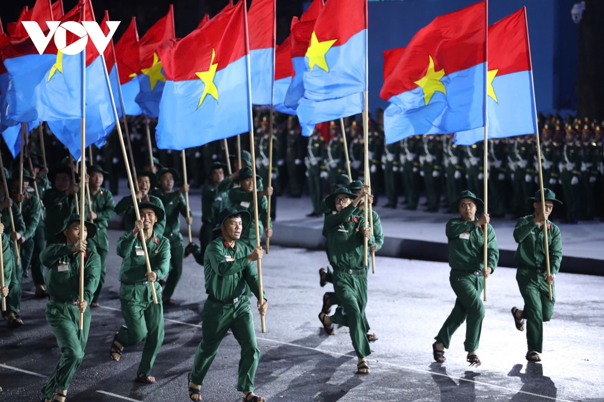 Chương trình được bắt đầu bằng màn biểu diễn trống hội với chủ đề “Bản hùng ca toàn thắng”, do 1.000 diễn viên là học viên của Học viện Cảnh sát nhân dân (Bộ Công an) biểu diễn. Tiếp đó là chương trình xếp hình nghệ thuật, chủ đề “Đất nước trọn niềm vui”, do Đoàn Nghi lễ Quân đội thực hiện.