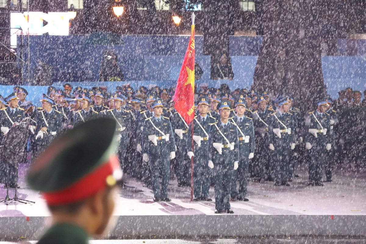 Trước đó, chứng kiến cảnh các cán bộ, chiến sĩ của các lực lượng Quân đội nhân dân và Công an nhân dân dầm mưa nhưng vẫn hát vang bài hát “Như có Bác trong ngày đại thắng”, nhiều người dân đứng xem không nén được xúc động.