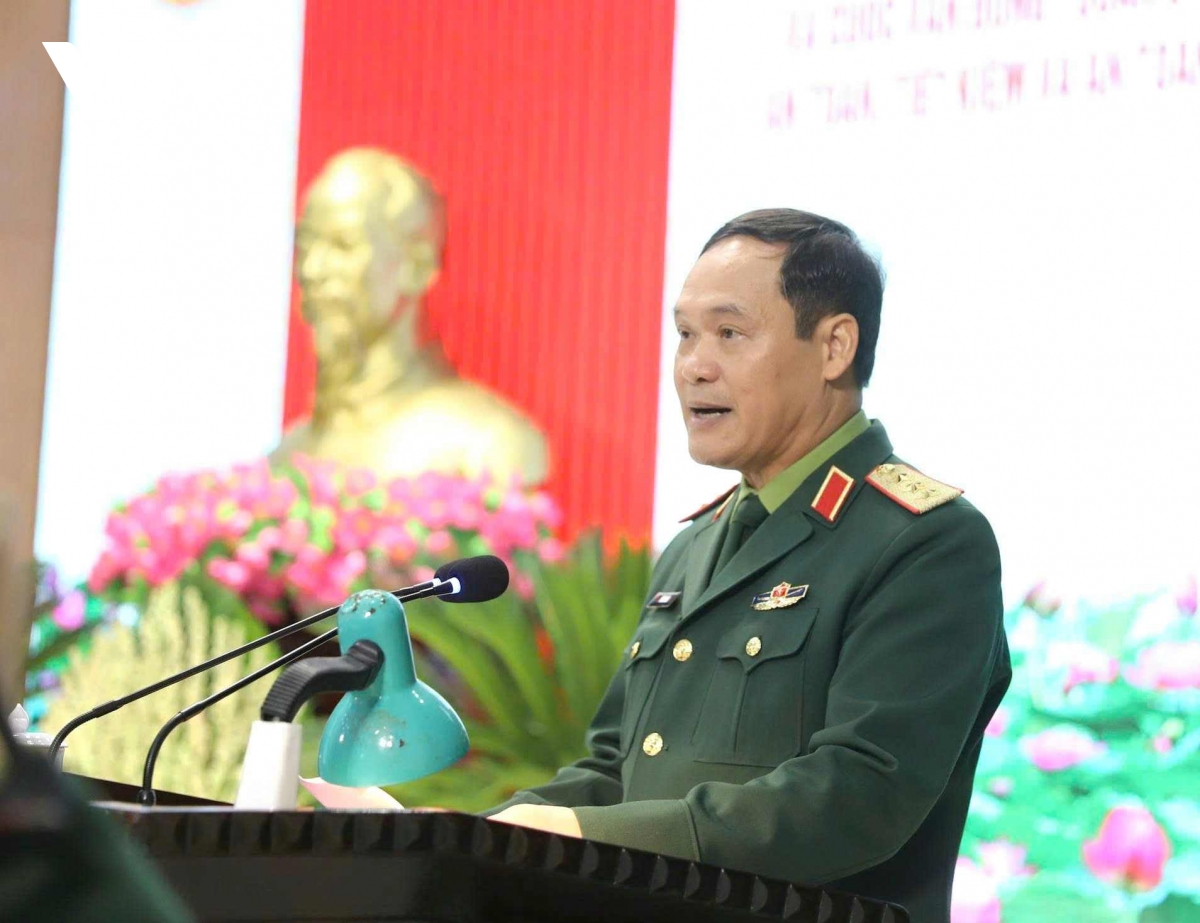 Thượng tướng Vũ Hải Sản, Thứ trưởng Bộ Quốc phòng, Trưởng Ban Chỉ đạo phong trào thi đua ngành Hậu cần và Cuộc vận động 50, Bộ Quốc phòng phát biểu tại buổi lễ.