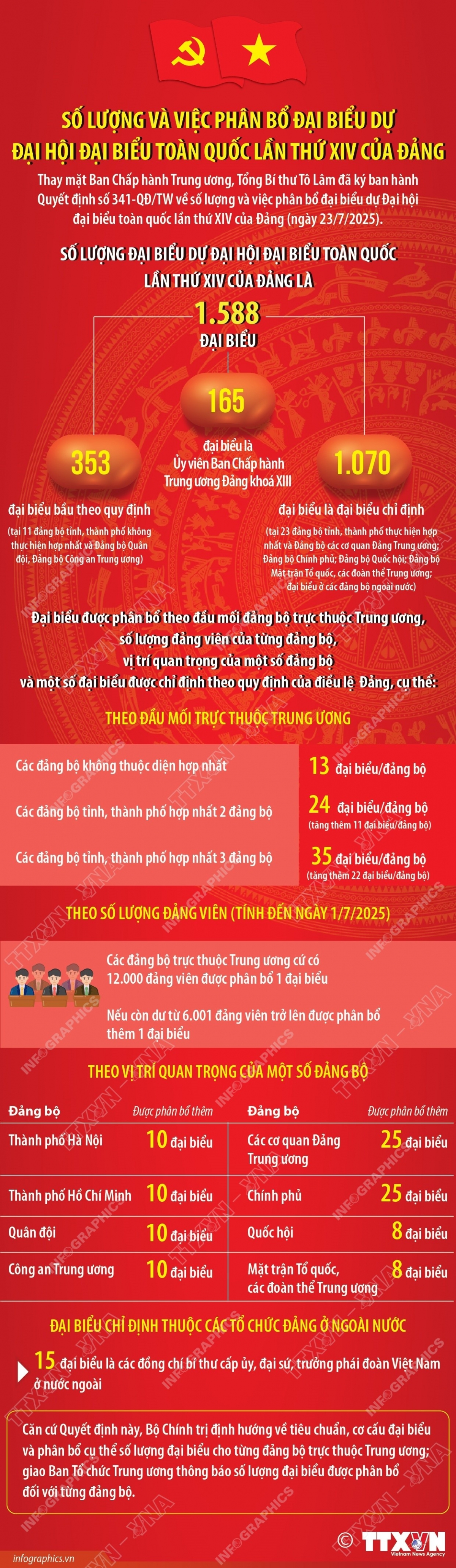 "Số lượng và việc phân bổ đại biểu dự Đại hội đại biểu toàn quốc lần thứ XIV của Đảng"