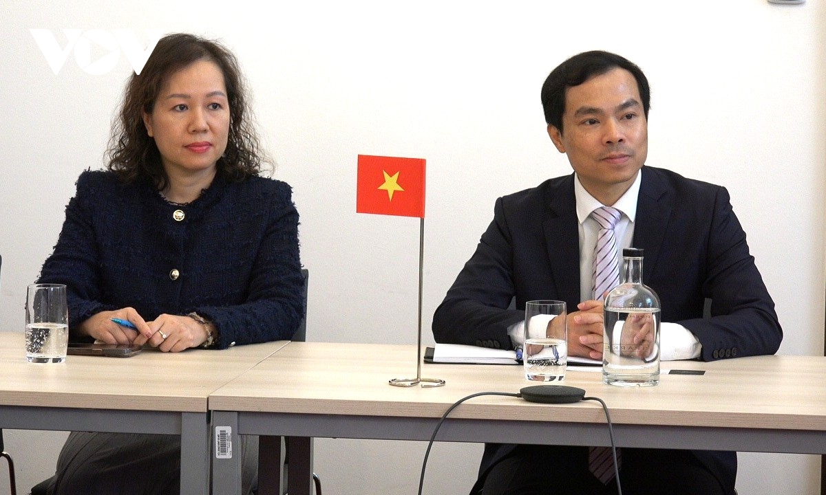 Bà Nguyễn Diệu Linh, Tham tán Công sứ, Đại sứ quán Việt Nam tại CH Séc và PGS.TS Nguyễn Mạnh Hùng, Phó Giám đốc Học viện Chính trị quốc gia Hồ Chí Minh, Phó Chủ tịch Hội đồng Lý luận Trung ương tại buổi làm việc