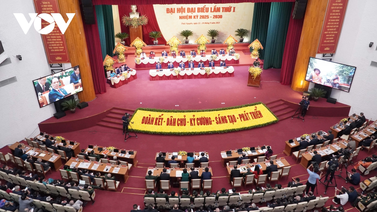 VOV.VN - Ủy viên Bộ Chính trị, Bộ trưởng Bộ Quốc phòng, Đại tướng Phan Văn Giang nhấn mạnh tại Đại hội đại biểu Đảng bộ tỉnh Thái Nguyên lần thứ I, nhiệm kỳ 2025-2030. Sau hợp nhất, Thái Nguyên có không gian phát triển rộng mở, cần xác định rõ các nhiệm vụ trọng tâm và khâu đột phá để phát triển nhanh, bền vững, xứng đáng là trung tâm của vùng trung du và miền núi Bắc Bộ.