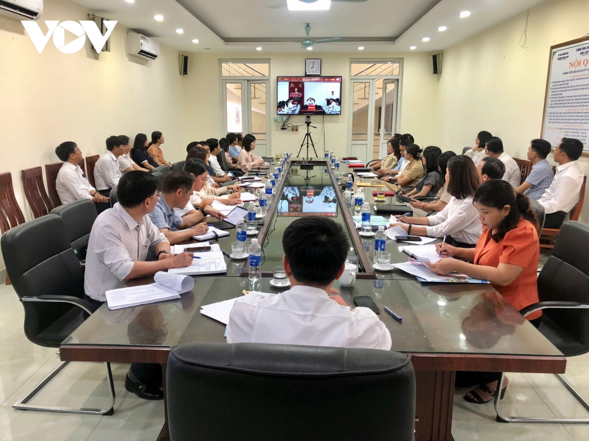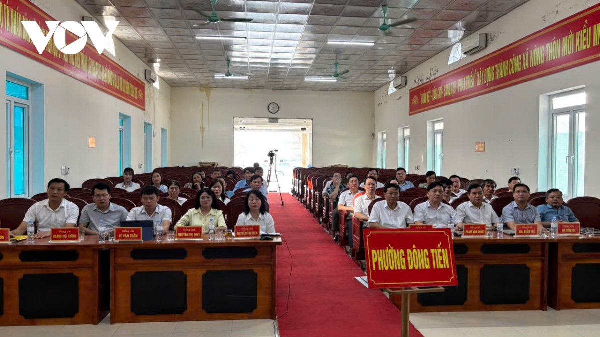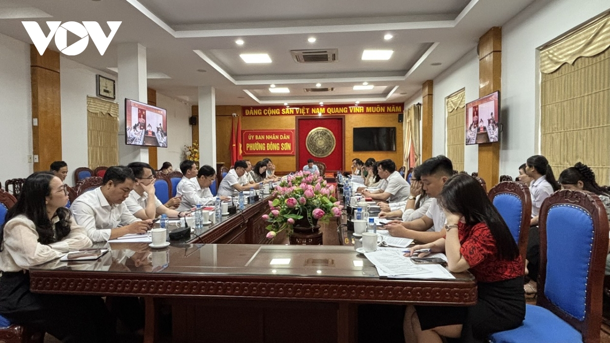 Tỉnh Thanh Hóa coi đây là bước “diễn tập” thực chất và toàn diện cho việc triển khai chính thức mô hình chính quyền địa phương hai cấp từ ngày 01/7/2025. Ảnh: điểm cầu trụ sở UBND xã Đông Tiến (cũ)