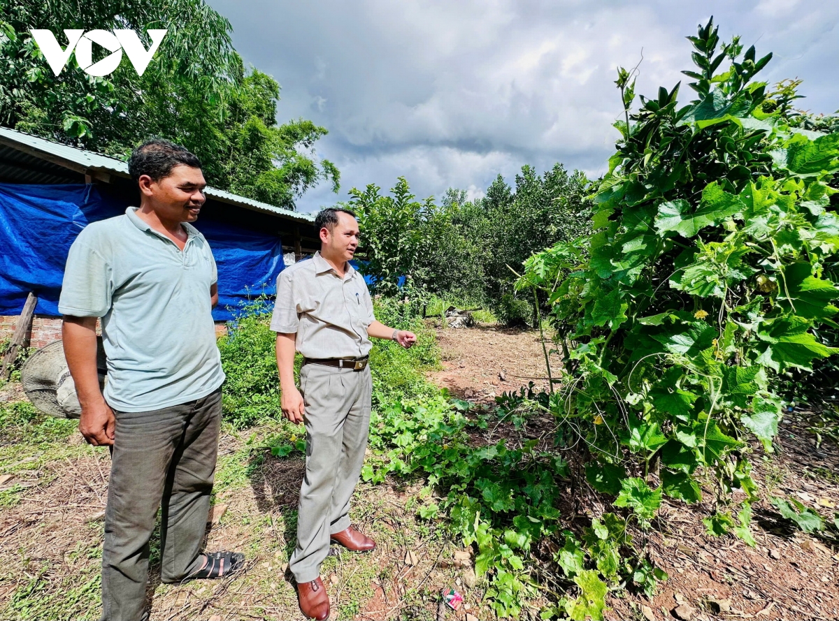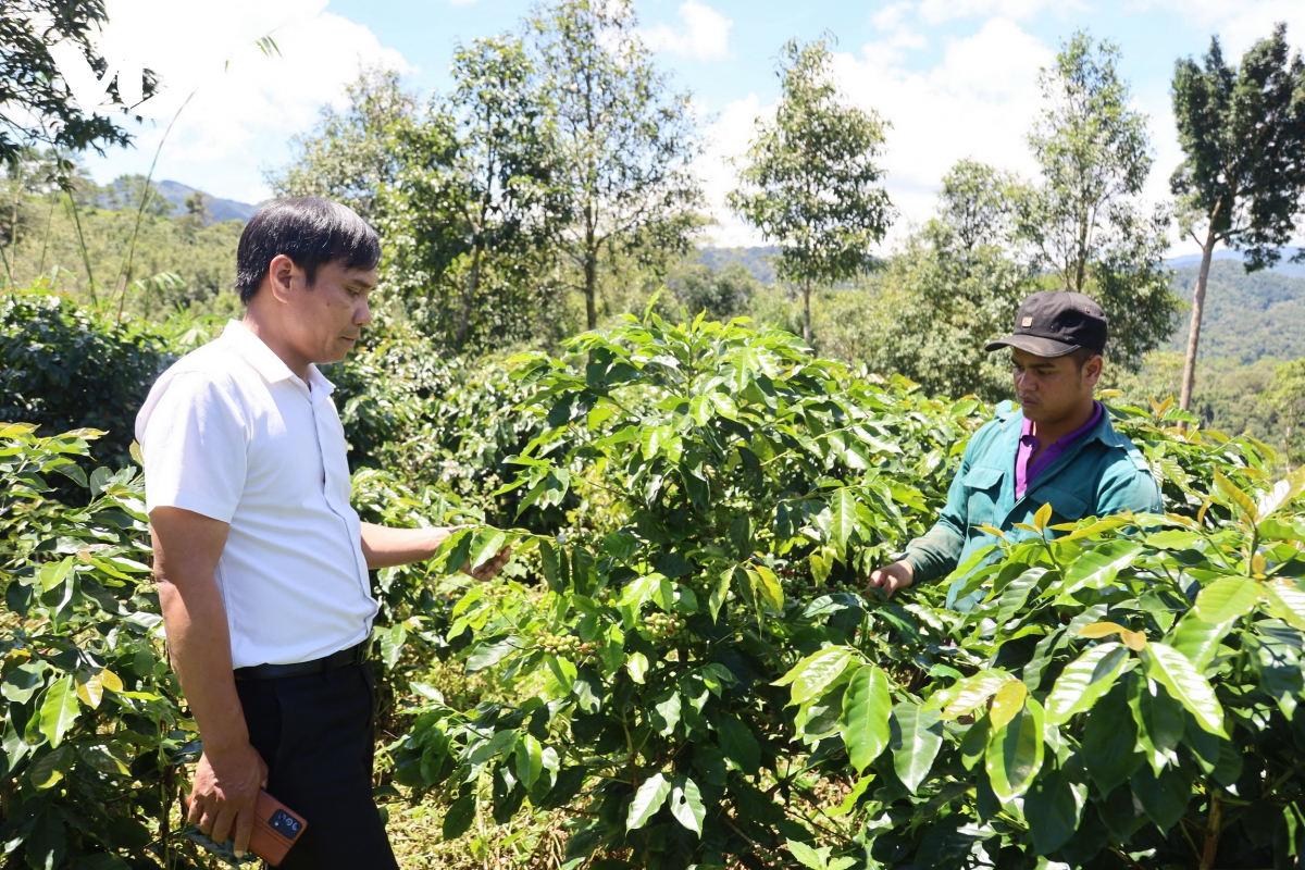 Cán bộ xã xuống tận thôn, hướng dẫn bà con áp dụng mô hình sản xuất mới